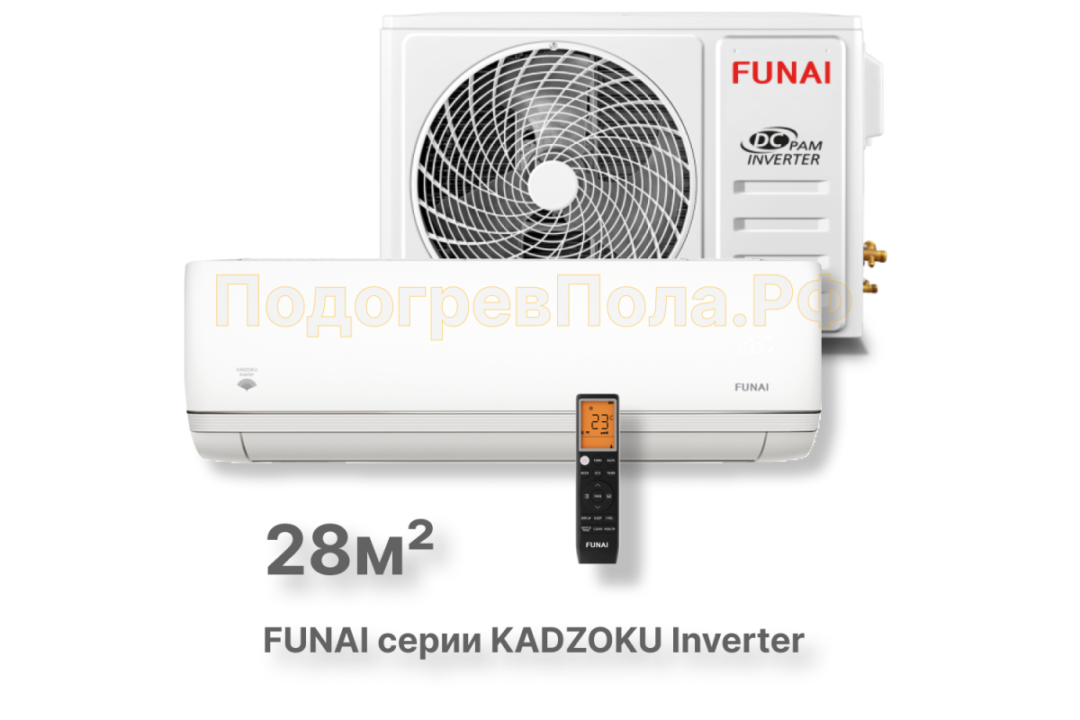 Купить FUNAI Инверторные сплит системы серии KADZOKU Inverter RAC-I-KD30HP.D01 по выгодной цене вы можете в нашем магазине "ПодогревПола.Рф" в г. Барнауле.