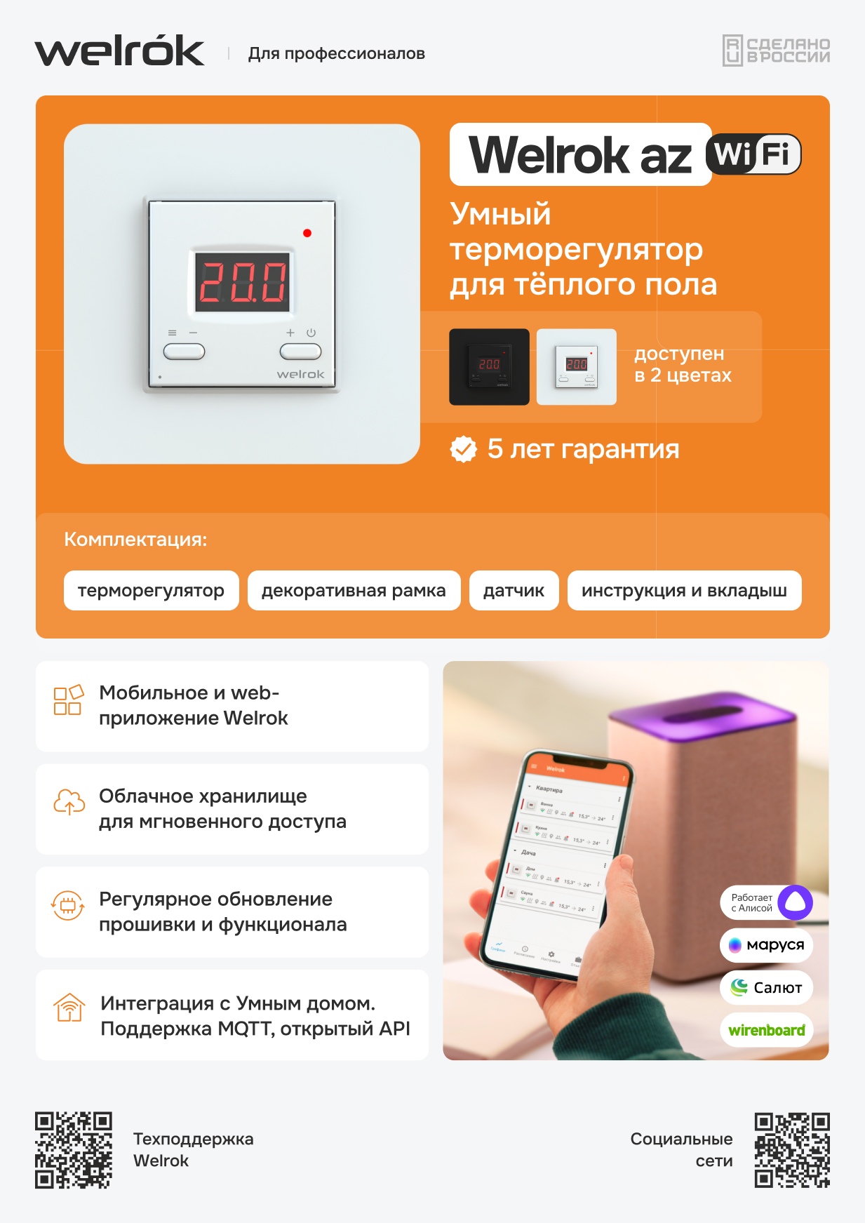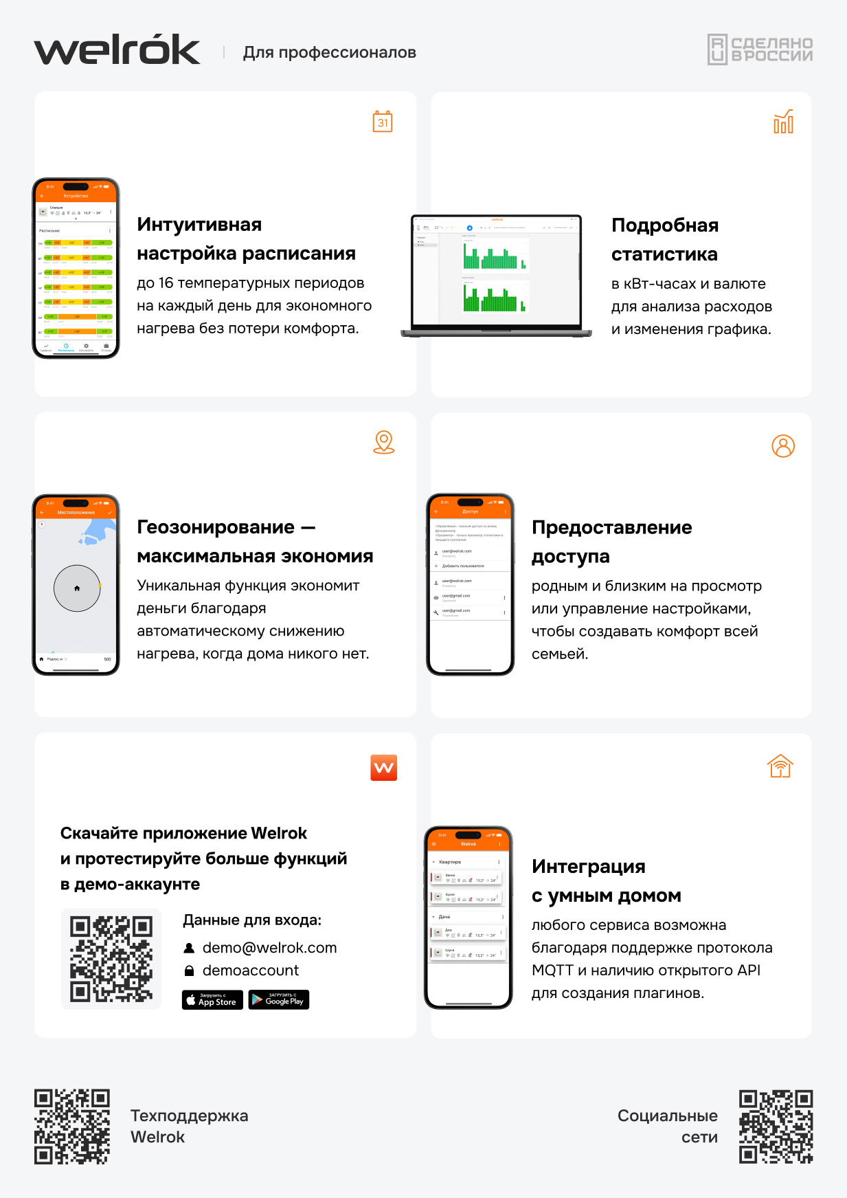 С приложением Welrok вы сможете легко контролировать температуру в доме, находясь в любом месте. Оно доступно в Google Play и App Store, а также в виде браузерной версии.